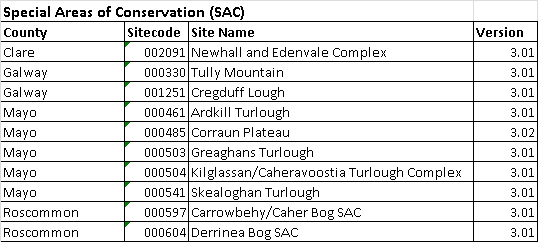 | Special Area of Conservation (SAC) | 31/08/2017 | Link to ISDE metadata record | SAC_ITM_2017_08 (ZIP, 22MB) |